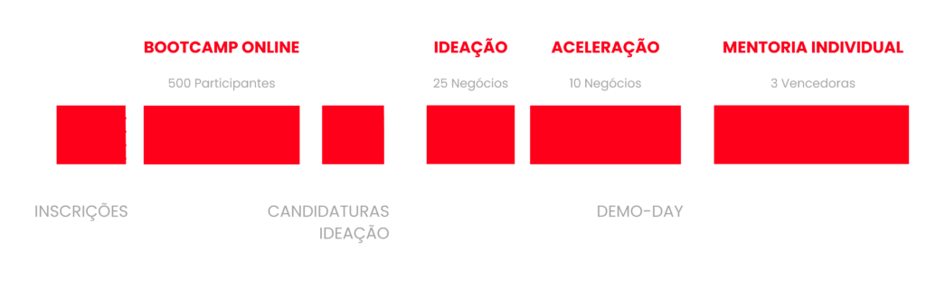 As participantes que tenham completado os módulos online podem candidatar-se com os seus projetos à fase de aceleração e mentoria, com duração de 3 meses, e apresentar o seu pitch no Demo Day a um júri de especialistas.